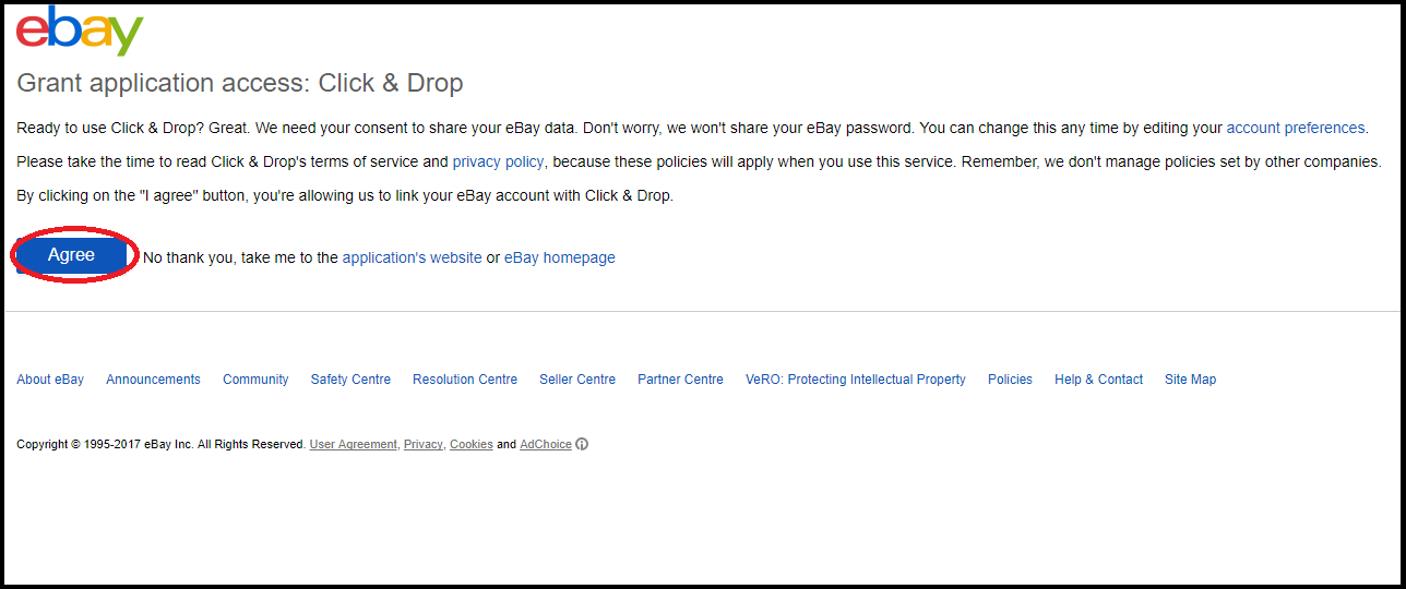 Read the eBay statement, and then click the ‘Agree’ button.