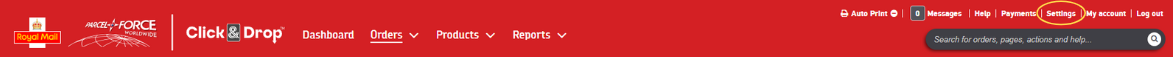 To begin, click 'Settings' in the top right corner of any page withing Click & Drop.