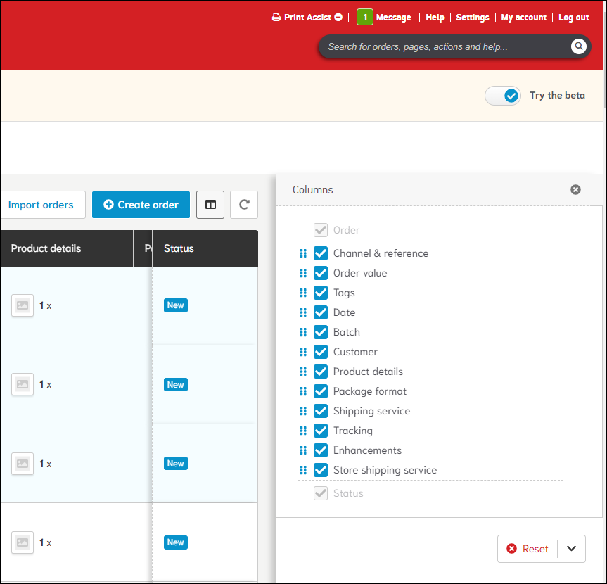 - All the key dates relating to an order, such as, 'Created', 'Despatched', and 'Manifested', are now shown in a single 'Date' column