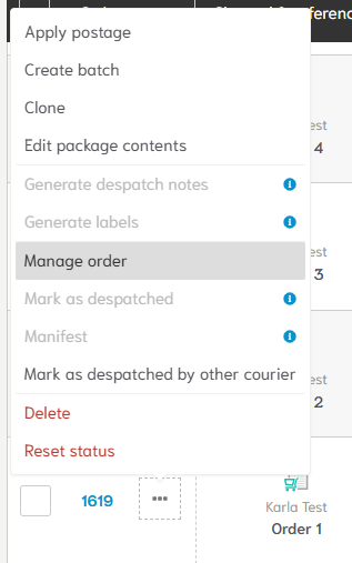 On any one of these orders, click on the three dot menu next to the order number and select Manage order