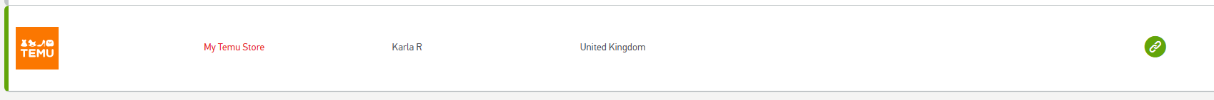 - You should now see Temu in your integration list with a green status icon indicating the connection is successful