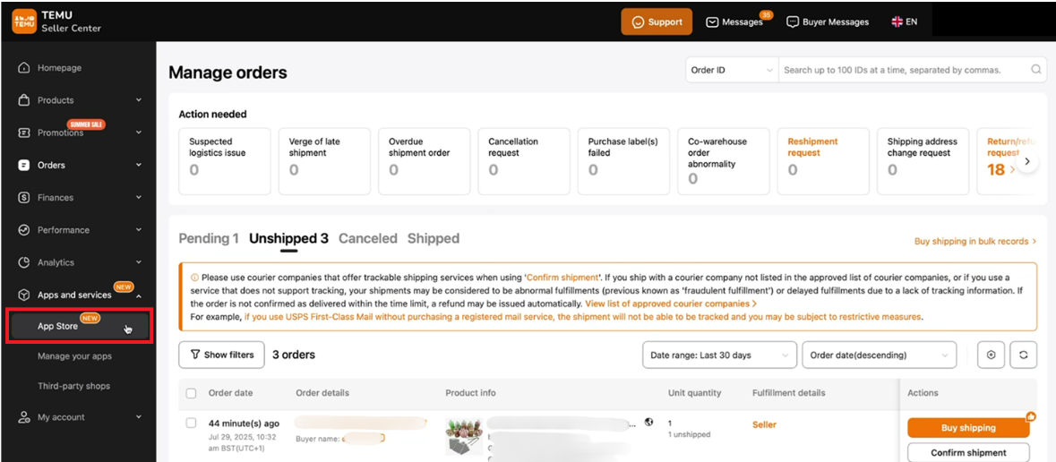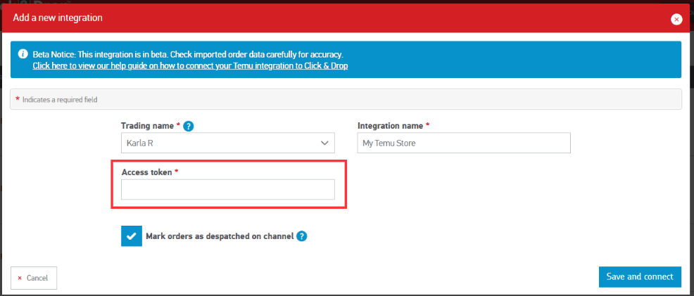 Integrating Click & Drop with your Temu Seller Center account is a quick and simple process. All you need is your access token, which can be retrieved directly from the Temu Seller Center.