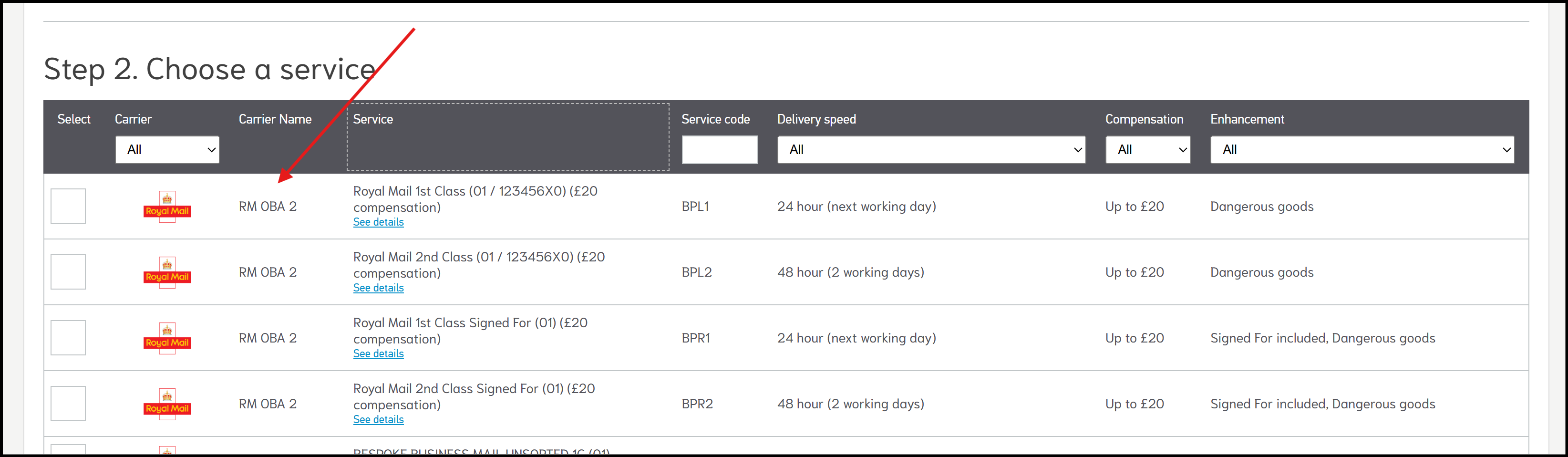 In Click & Drop, each distinct OBA number and PLN combination is referred to as a carrier.