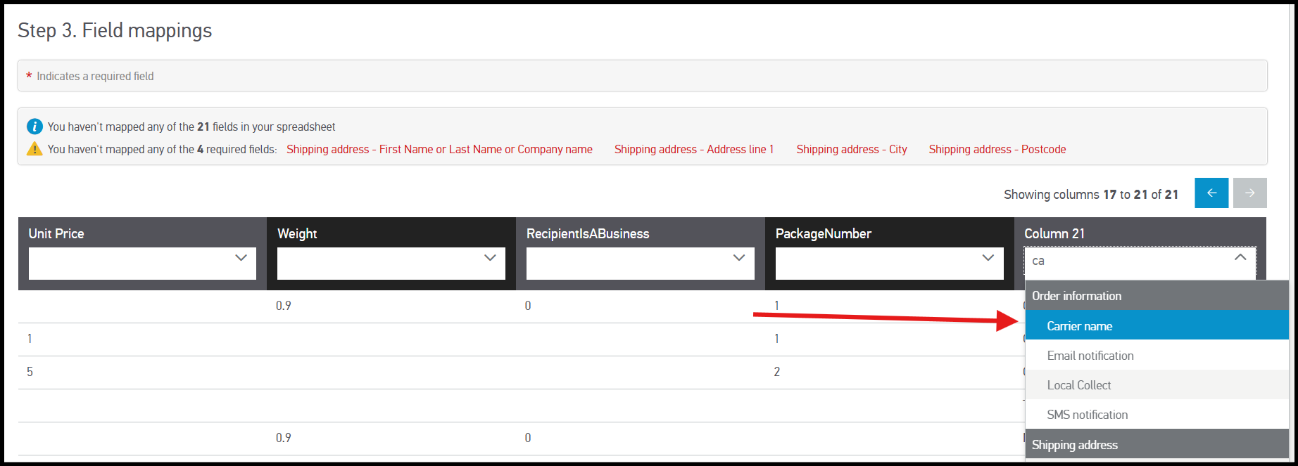 You will need to add this as a new column in your spreadsheets, and you will need to re-map your spreadsheet to include the new field. You must make sure that the values you add in this column matches exactly the 'Friendly name' of one of the carriers you have set in Step 1 above.