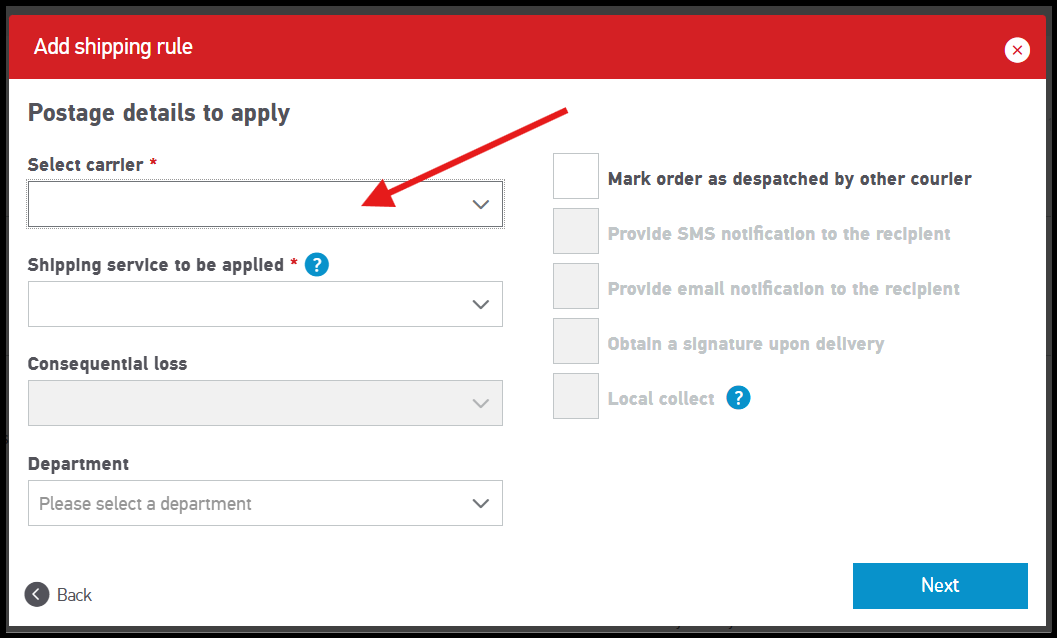 We have added a new 'Select carrier' dropdown menu to our shipping rules settings that will allow you to select a particular carrier that will be assigned to each order that is eligible for the shipping rule. You can see this dropdown menu when creating a new shipping rule, or when editing an existing one.