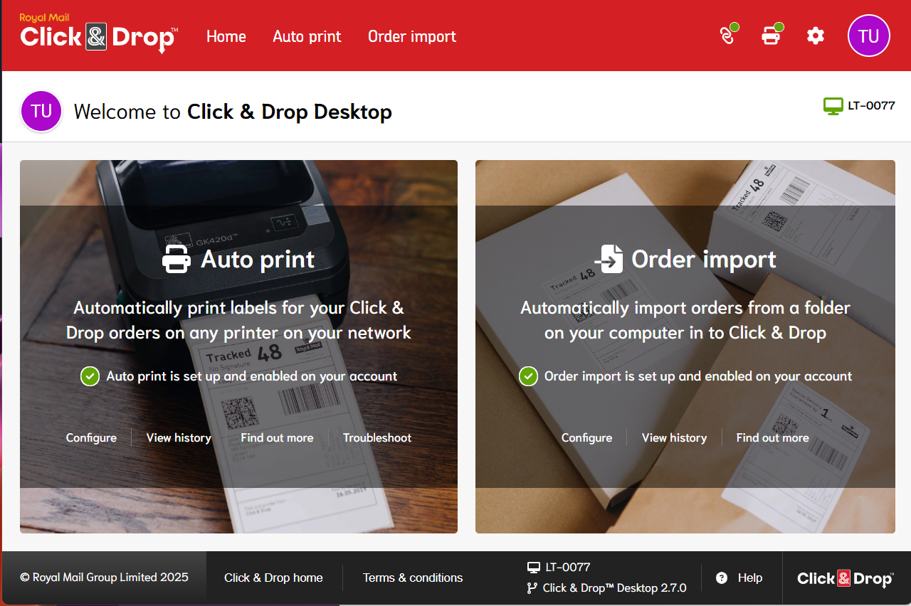 2. Auto Print - Automatically send labels generated by Click & Drop to a configured printer without having to manually print them