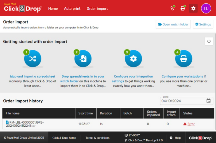 Important note: Some level of technical knowledge is required to import orders and produce labels by this Click & Drop Desktop app, particularly if you use the app alongside your own existing company systems and networks.