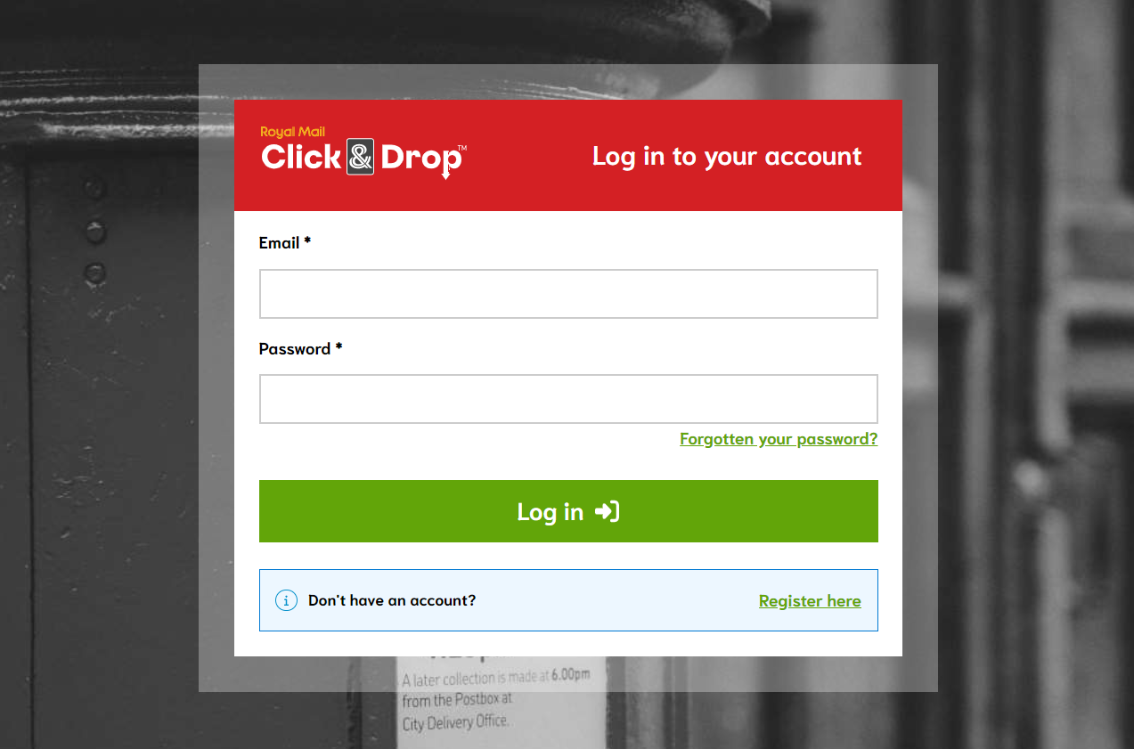 After you have installed the app, you will need to log in using your Click & Drop account details.